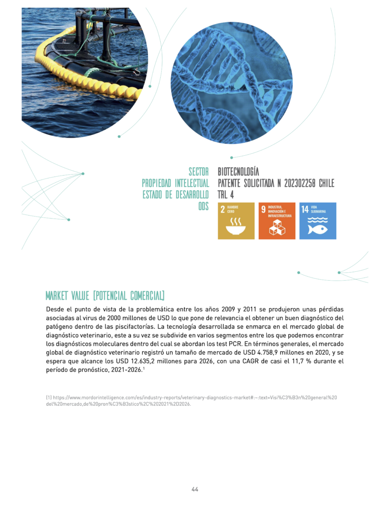 La tecnología desarrollada se enmarca en el mercado global de diagnóstico veterinario, este a su vez se subdivide en varios segmentos entre los que podemos encontrar los diagnósticos moleculares dentro del cual se abordan los test PCR.